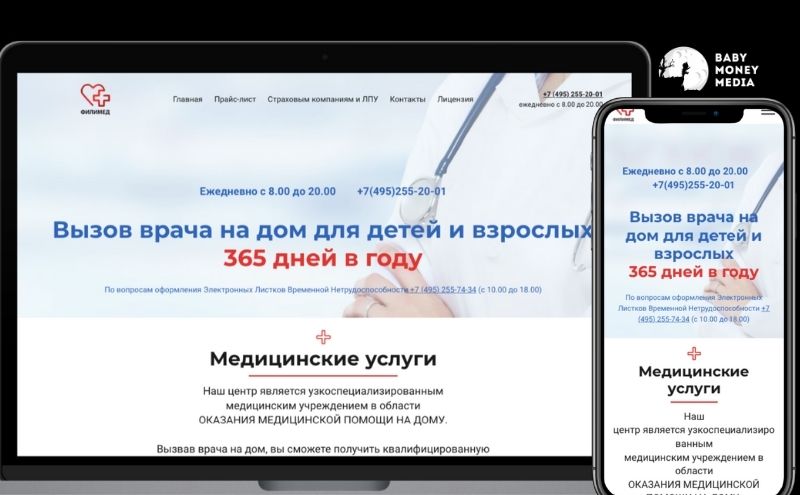 Обновили старый сайт клиники, заточенный под одну услугу — вызов врача на дом.