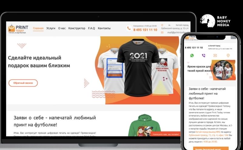 Сайт для студии «Print Today», специализирующейся на разнообразной печати на одежде.