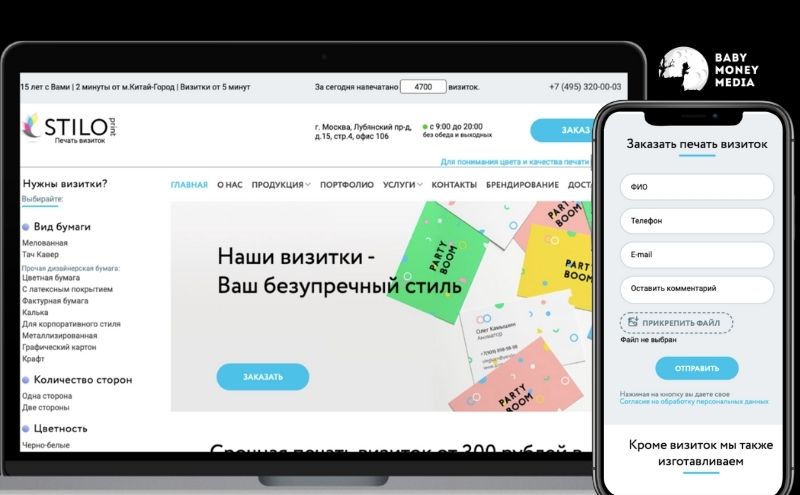 Сайт для компании по изготовлению визиток и печатной продукции «Stilo».