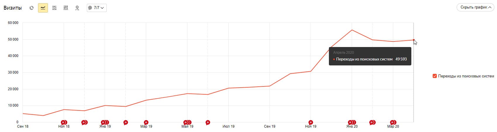 - Увеличилось количество трафика из поиска: было – 2000, стало – 6000