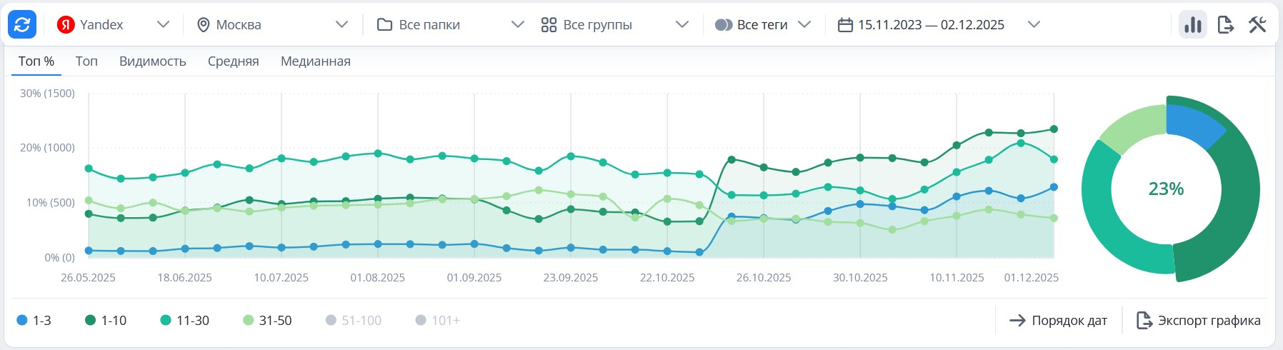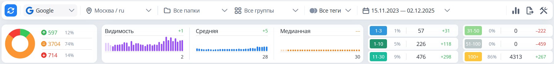 - Увеличилась видимость сайта в поиске: было – 2, стало – 17
