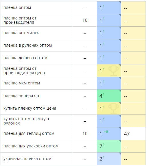 - Увеличилось количество запросов в ТОП 10: было – 0, стало – 150