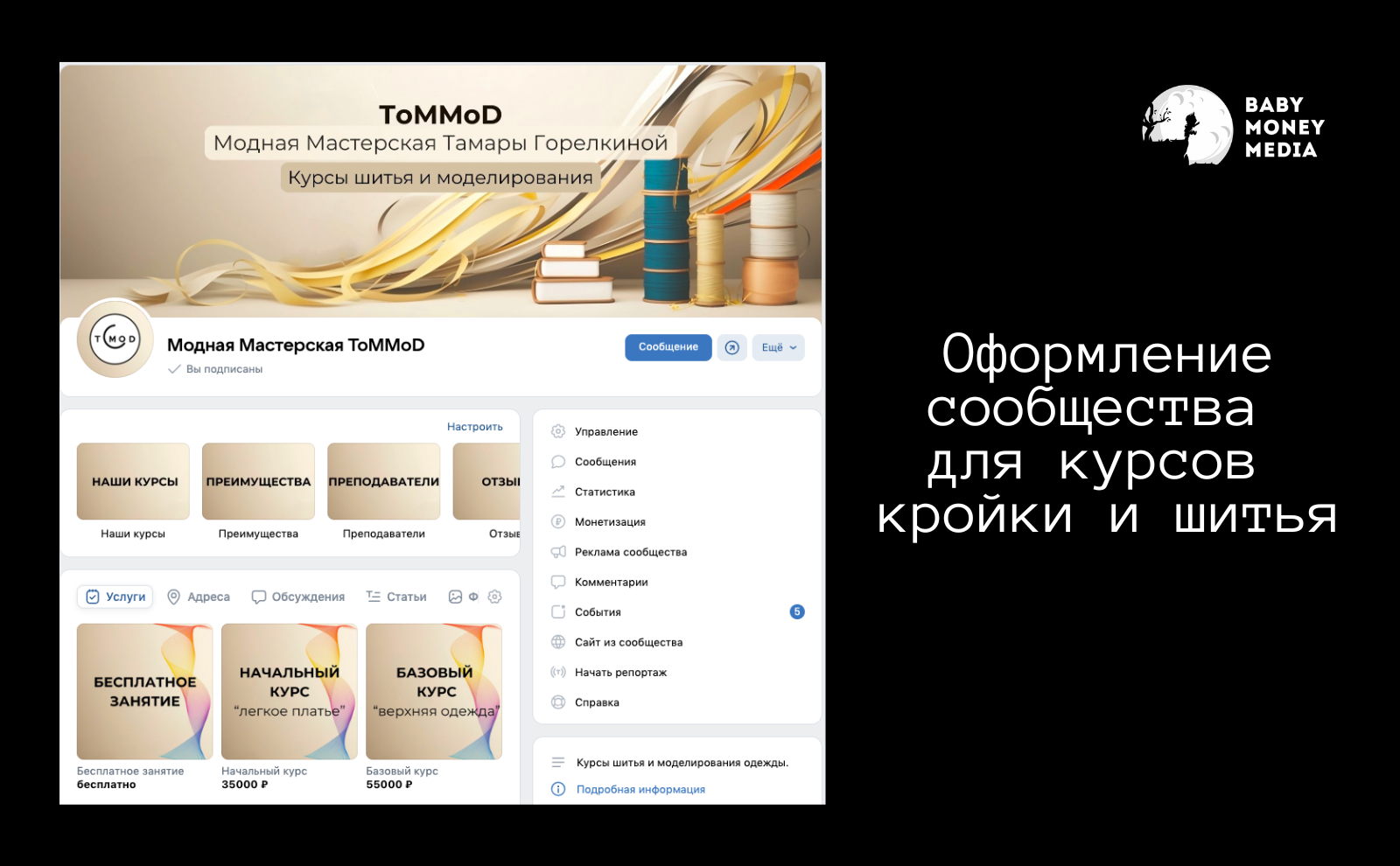 - Корректно оформленное сообщество с уникальным дизайном и конверсионным прогревом лидов