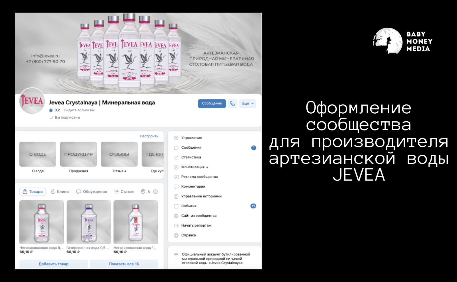 Оформление сообщества для производителя артезианской воды Jevea