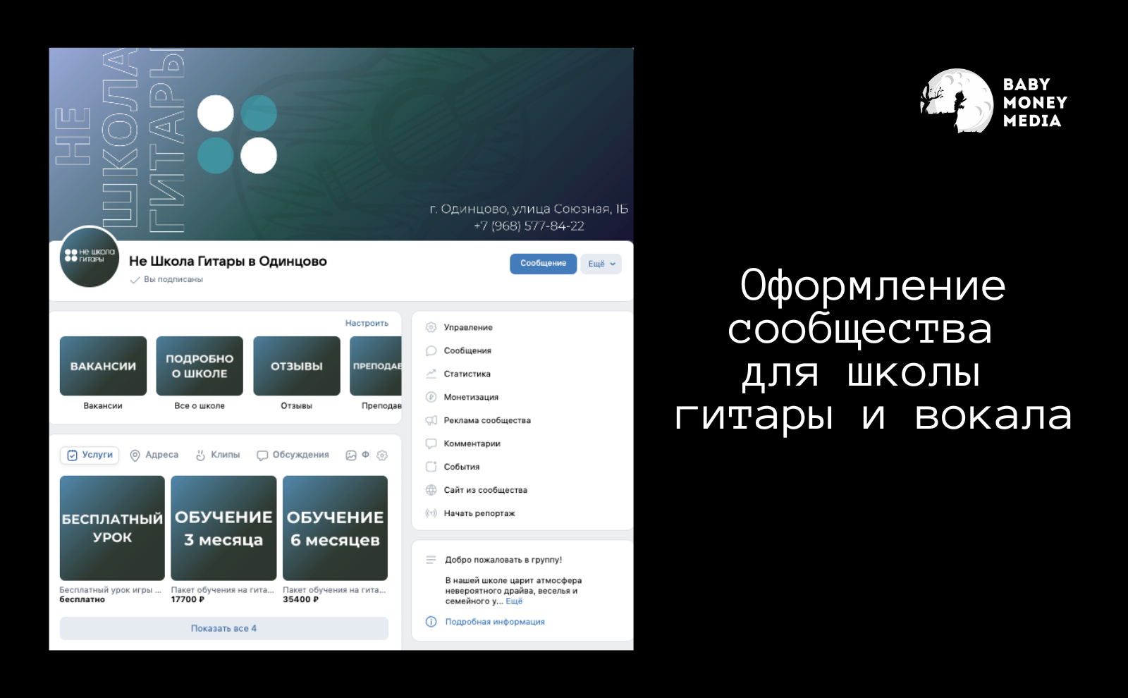 Оформление сообщества для школы гитары и вокала